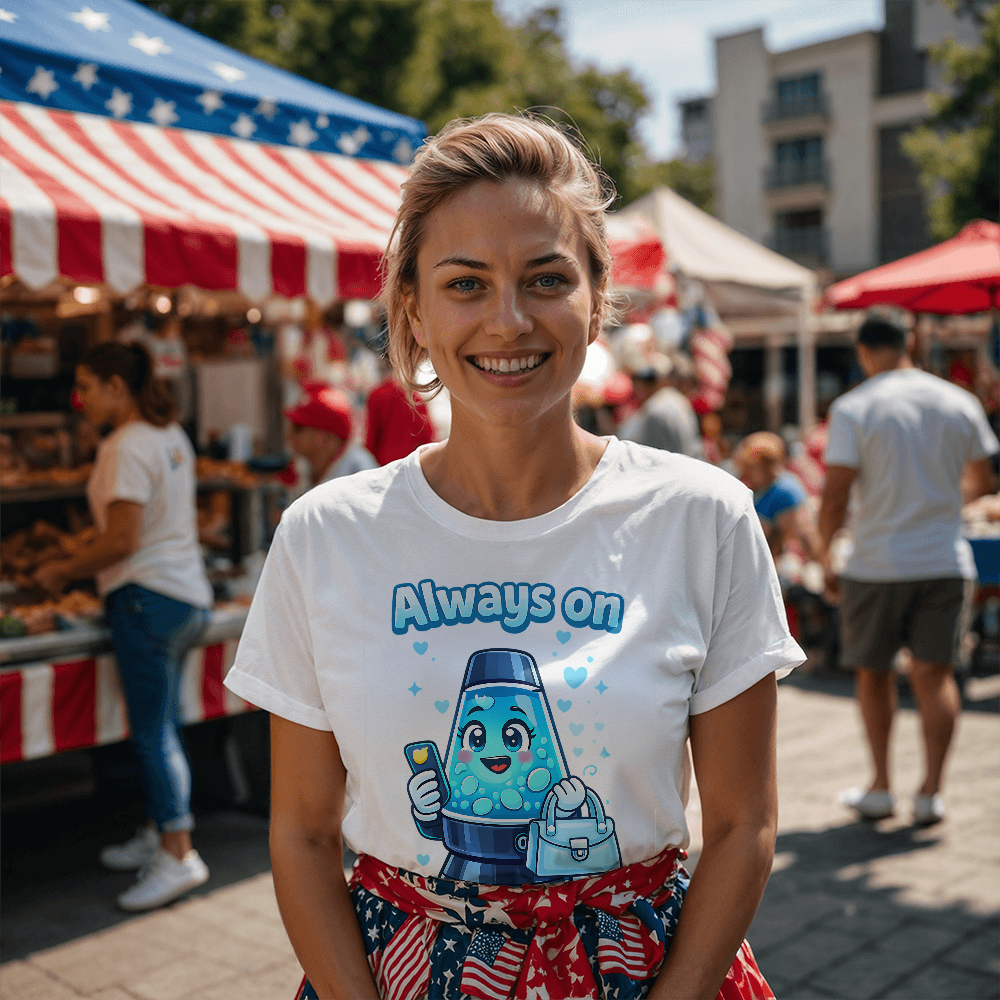 Some people stay energized no matter what the day brings. The Always On Lava Lamp T-Shirt features a lively lava lamp character designed to reflect motivation, positivity, and a steady sense of humor.